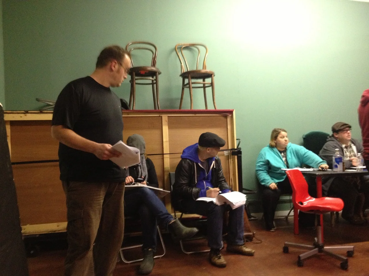 (Pictured Photo 1: Left to right Suze (Stage Mgr), Scott (Dir), Michael Holmes (Richard Mayhew) Paula Rhodes (Door) Photo 2 Left to Right Bryan Krasner (Vandemar), Sondra Mayer (Hunter Understudy), Guy (Croup Understudy/Dialect Coach), Suze, Scott), Photo 3 Ezra Buzzington (Croup)